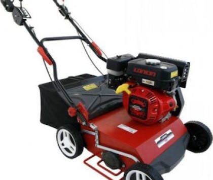 Αραιωτής χλοοτάπητα Loncin S400 με κινητήρα Loncin, μεταλλικό πλαίσιο οπίσθιας εκτόξευσης και συλλογής και πλάτος εργασίας 40cm. Ρύθμιση ύψους κοπής σε 5 στάδια. Για αποτελεσματικό αερισμό και συντήρηση του χλοοτάπητα.