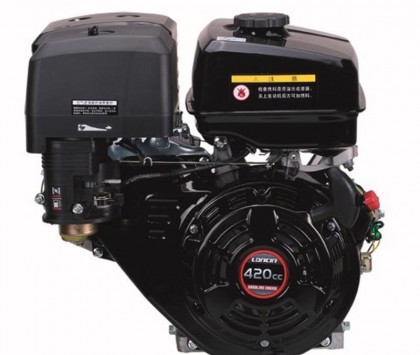 Μονοκύλινδρος αερόψυκτος βενζινοκινητήρας G420F, 420cc, 12,23 ίππων, οριζόντιου άξονα. Διατίθεται με άξονα με σφήνα διαμέτρου 25,4mm.